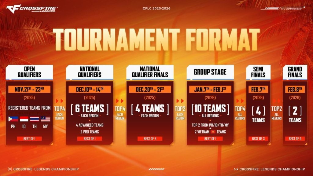 Kejohanan ini merupakan kejohanan serantau sulung dalam ekosistem esports CrossFire: Legends, susulan pelancaran rasmi permainan FPS mudah alih ini di Asia Tenggara pada Disember lalu. CFLC Grand Finals dijadualkan berlangsung pada 8 Februari 2026, sekali gus menobatkan juara pertama CrossFire: Legends SEA.