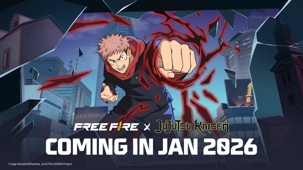 Selain aksi sengit, peminat turut dikejutkan dengan pengumuman kerjasama baharu Free Fire x Jujutsu Kaisen, yang bakal hadir pada Januari 2026, menampilkan karakter ikonik seperti Yuji Itadori, Megumi Fushiguro, Nobara Kugisaki, dan Satoru Gojo bersama kostum serta efek khas eksklusif.