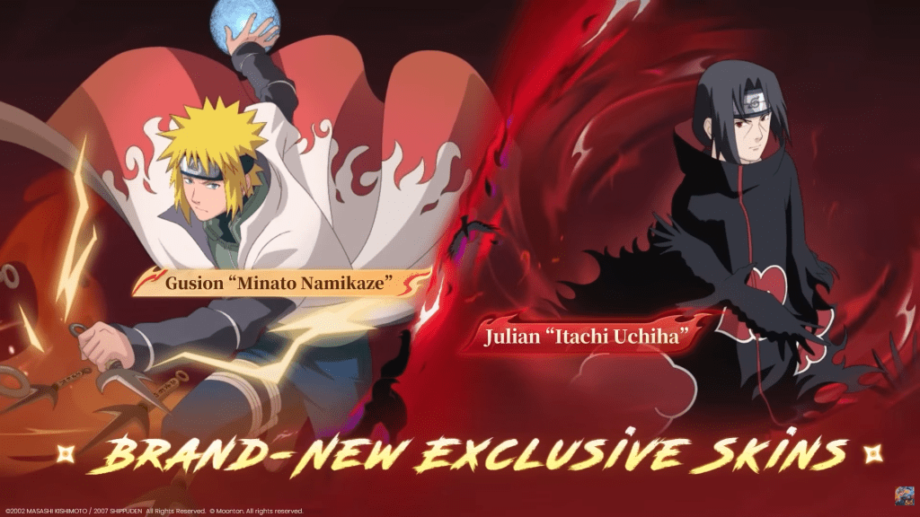 Hokage Keempat ini hadir dengan teknik Flying Raijin Jutsu, membolehkannya bergerak sepantas kilat di medan perang. Skin ini membawa tema “A Bond Reunited”, menonjolkan ikatan kuat antara ayah dan anak. - Itachi Uchiha (sebagai Julian)